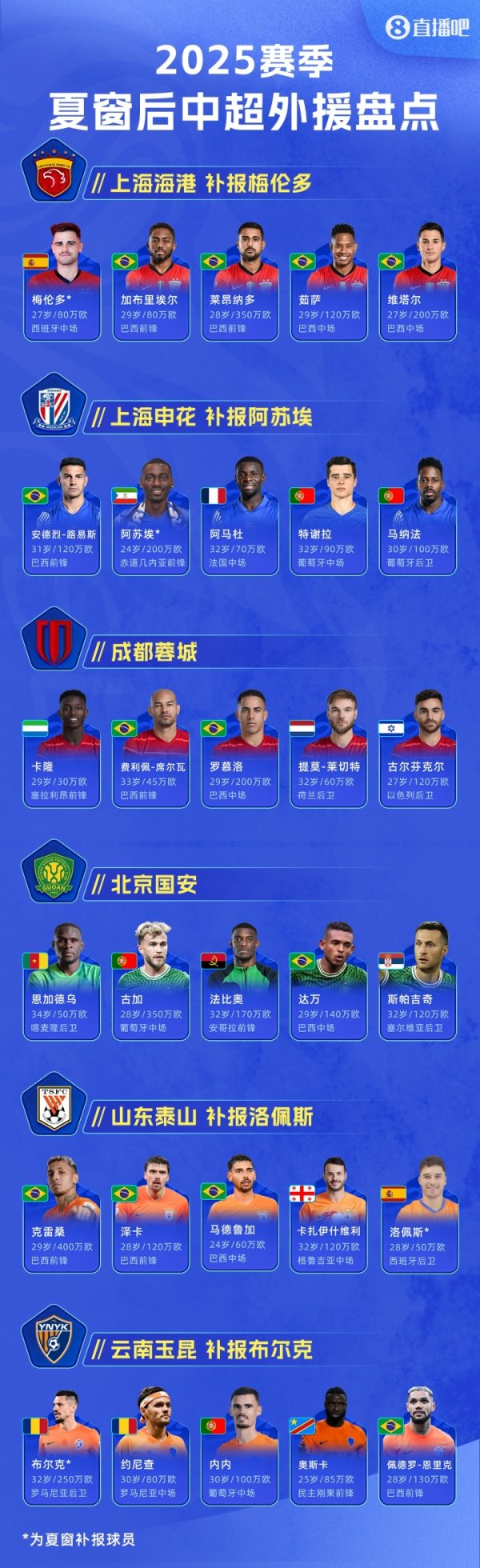 2025赛季中超职业联赛 夏窗今日关闭,16支球队中有10支球队更换外援在线赌场注册优惠,北京国安、成都蓉城、武汉三镇、天津津门虎、河南、青岛西海岸6队未换外援 ...