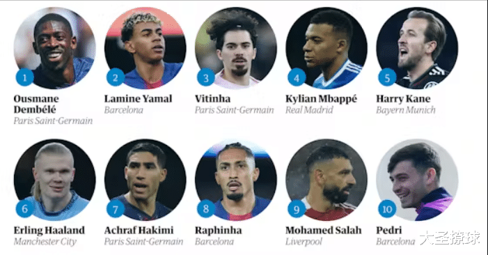 不出所料,五大职业联赛 贡献了榜单中96%的球员,剩下的来自沙特联(C罗)、巴甲、土超和美职联(梅西)。从国籍上来看,72%来自欧洲英超比赛视频直播,21%来自南美,7%来自非洲。十二个月后谁会荣膺榜首呢?亚马尔是最大热门。