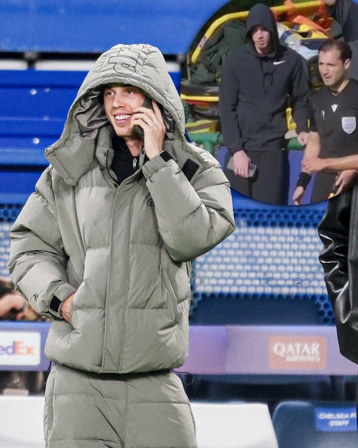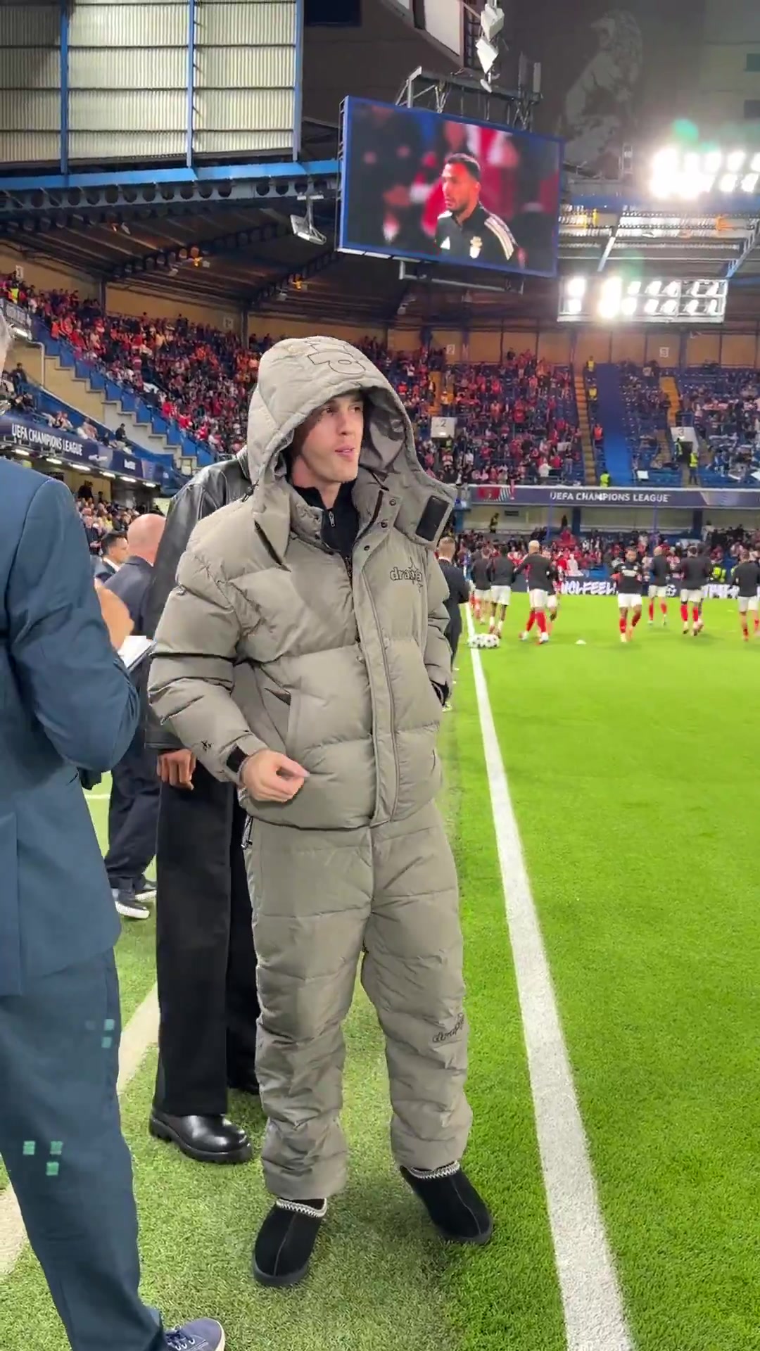 10月01日讯 欧冠职业联赛 阶段切尔西1-0击败本菲卡,帕尔默现身斯坦福桥运动活动 场 ,穿着大棉衣+棉鞋看赛事 。