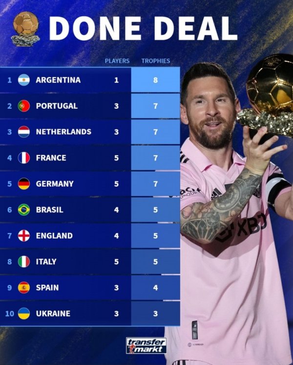 英超投注在线平台 9月22日讯 德国转会市场统计了各国球员赢得金球奖的次数,并列出榜单,阿根廷8次居首,葡萄牙、荷兰、法国、德国7次第二。 各国球员夺得金球奖次 ...