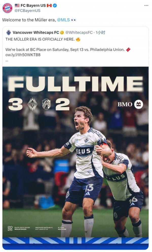英超在线直播免费观看直播高清完整版咪咕 8月24日讯 在今天进行的美职职业联赛 事 中,穆勒点射破门,收获美职联首球,帮助温哥华白浪主场作战 3-2击败圣路易斯 ...