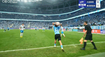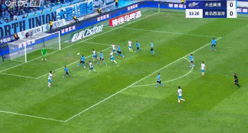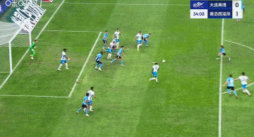 上半场补时第4分钟,大连英博危险区域 线附近的扫射被李昊双掌封出。↓